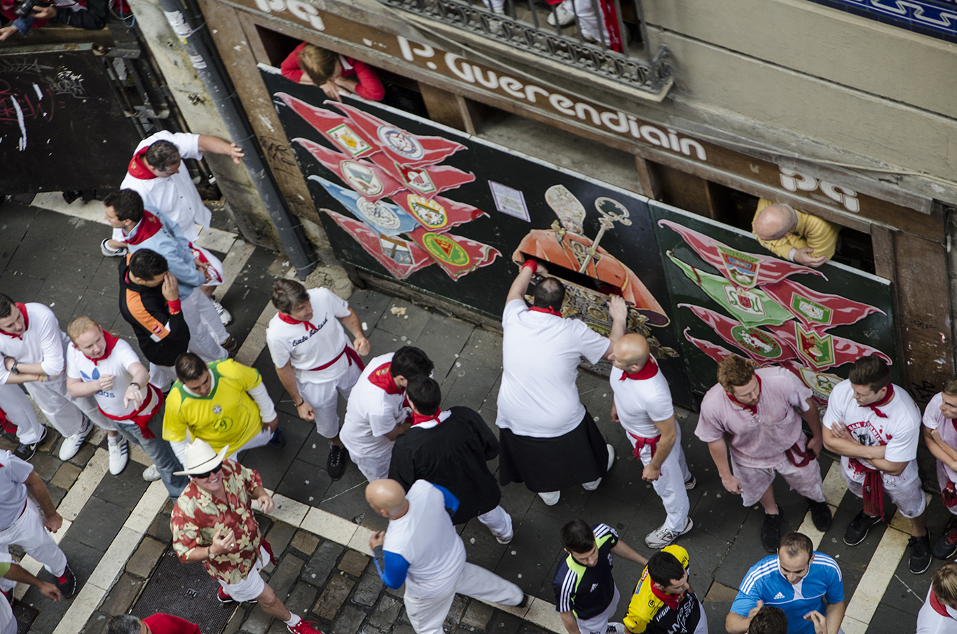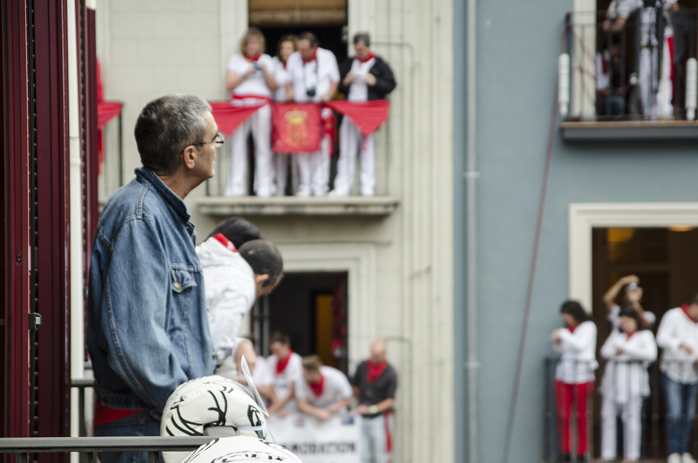 San Fermin 2014 has started! Today was the first running of the bulls, which was very quick and dangerous leaving some injured, one of them at the beginning of Estafeta street, whom we saw live from the balcony.