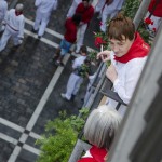Before going to “El 2 de la Estafeta” to see the running of the bulls, it could be felt in the streets that the festival is alive. The 2nd encierro was run by the Dolores Aguirre bulls, a clean and quick running. Thanks to Mercaderes corner, there were some intense moments.