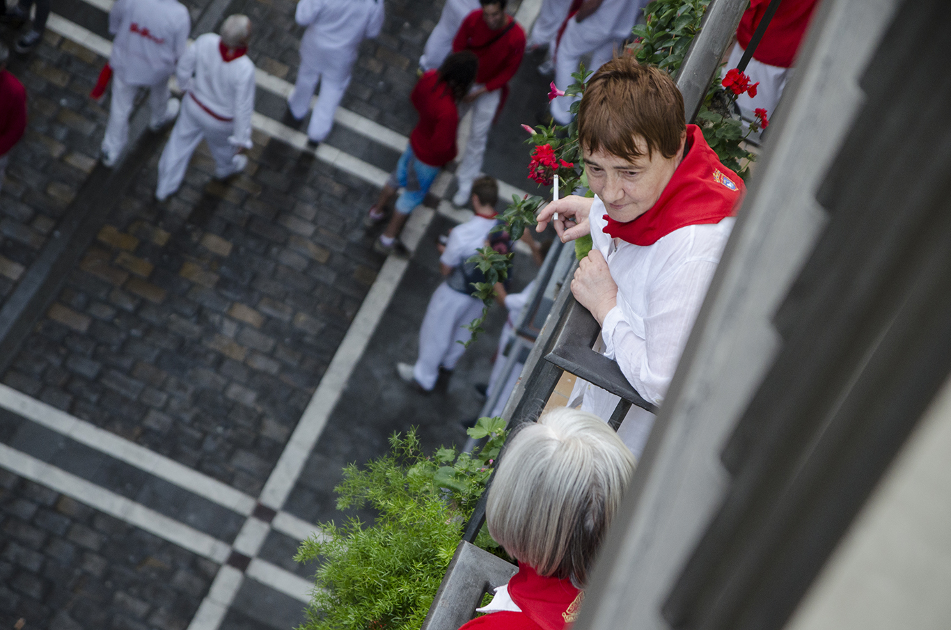 Before going to “El 2 de la Estafeta” to see the running of the bulls, it could be felt in the streets that the festival is alive. The 2nd encierro was run by the Dolores Aguirre bulls, a clean and quick running. Thanks to Mercaderes corner, there were some intense moments.